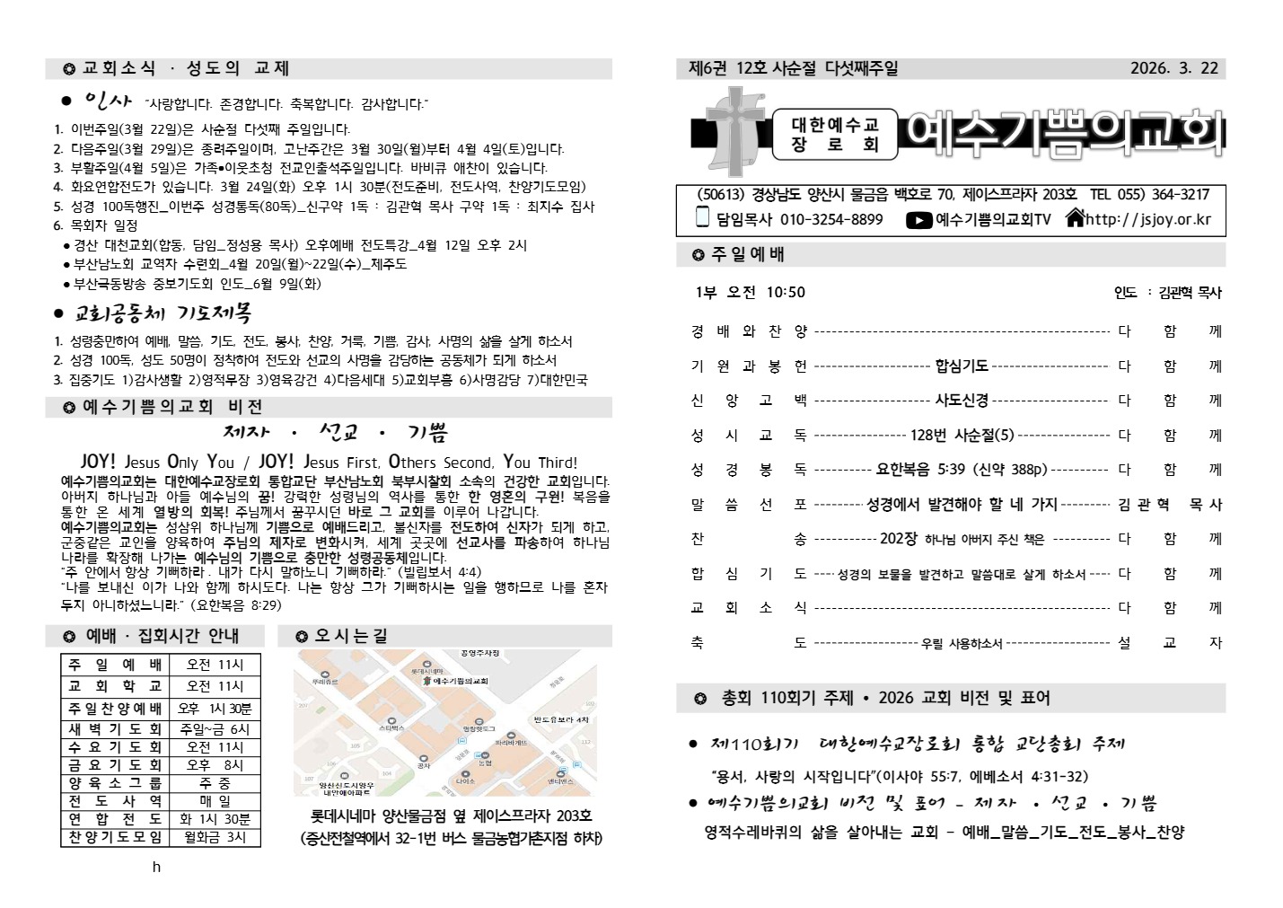 2026³â 03¿ù 22ÀÏ ¿¹¼ö±â»ÝÀDZ³È¸ ÁÖº¸